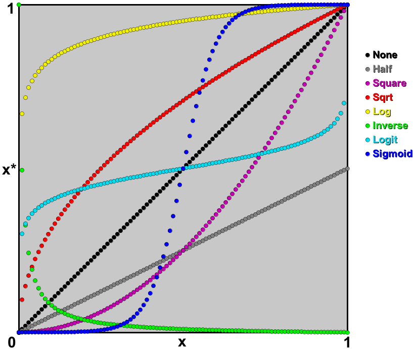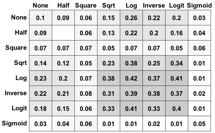 ransformations we choose ought to cover the full range of negative to positive skewness as well as mixtures of distributions that are relatively symmetric
